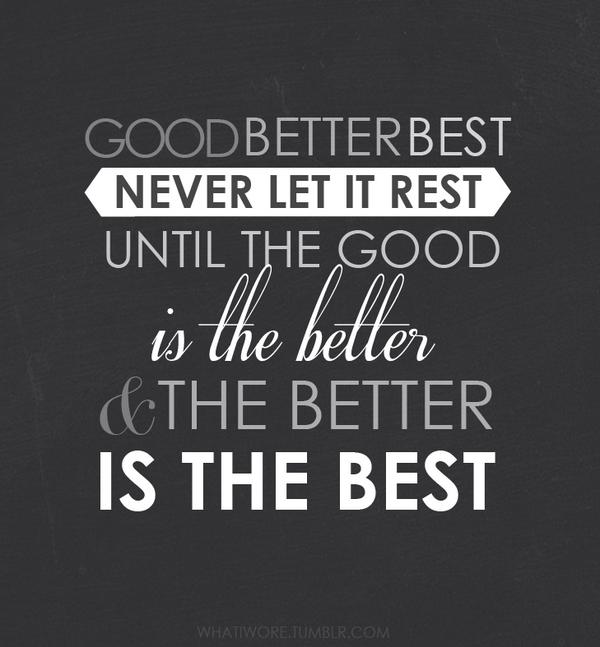 Till your good is better and your better is best. Til your good is better and your better is best. Never let it rest.